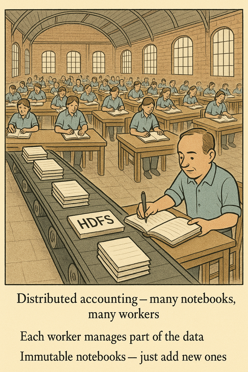 Hadoop and later Apache Spark built on this philosophy — immutable files, distributed processing, fault tolerance. The idea of writing new notebooks instead of editing old ones became a global standard.