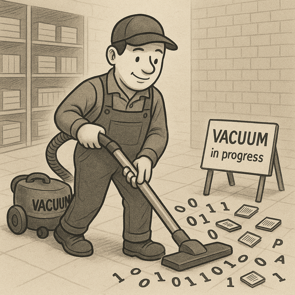 PostgreSQL introduced this officially in 1989. It kept databases lean and efficient — and the name VACUUM stayed ever since.